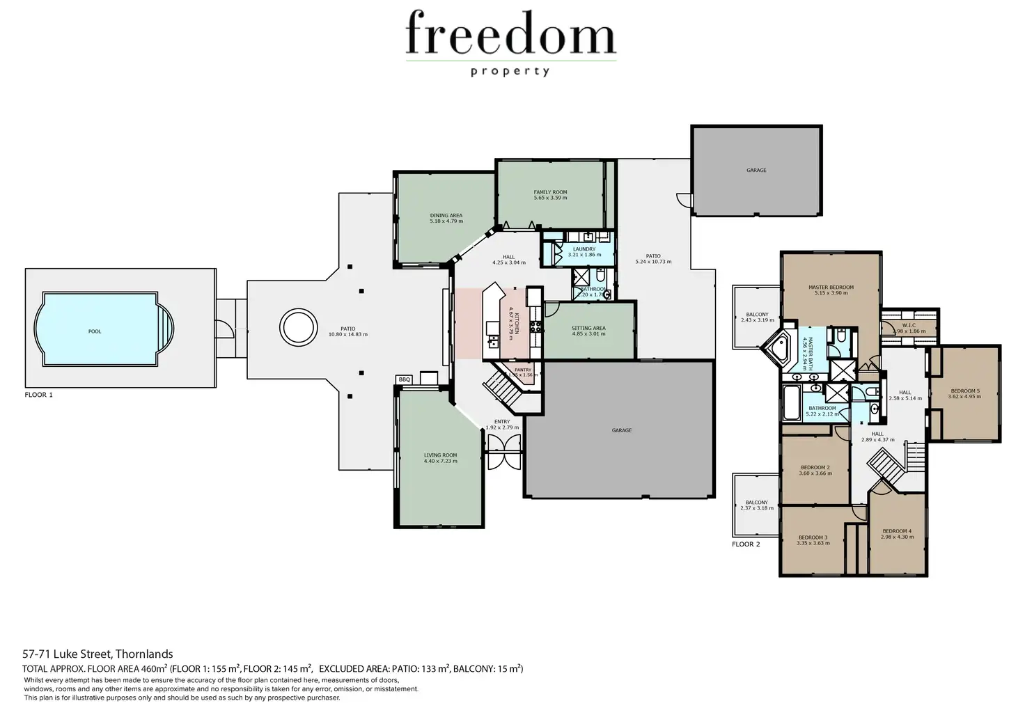 With 5 bedrooms, each adorned with built-in robes, and three bathrooms, this home caters effortlessly to the needs of larger families. Two of the bathrooms are adorned with luxurious spa baths, offering indulgent relaxation. The master suite, features direct balcony access to one of the two balconies this property offers and with a lavish ensuite, truly epitomises luxury living.