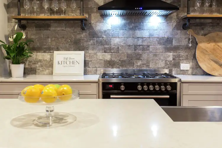 In the kitchen, a touch of industrial, a splash of luxury and a pinch of country chic creates a workspace that is not only functional but visually stunning. Like all elements of this home, the space has been prestigiously detailed so as to create an exquisite experience for all the senses. For functionality, the home chef can enjoy a list of inclusions such as a 900mm gas cooktop and oven, designer rangehood, farmhouse-style sink, tea and coffee corner, breakfast bar and plenty of storage, plus beautiful open timber shelving.