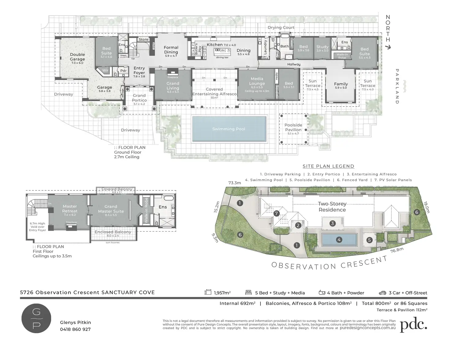 There is a new high standard of supreme opulence in every detail of this stunning American inspired luxury residence of 800sqm (86 squares) on an expansive 1957sqm artfully landscaped allotment. Located in the exclusive securely gated Sanctuary Cove enclave, 5726 Observation Crescent is arguably one of the best locations within the community. Situated on a private corner surrounded by parks on an elevated location, this stunning home is nothing short of spectacular.