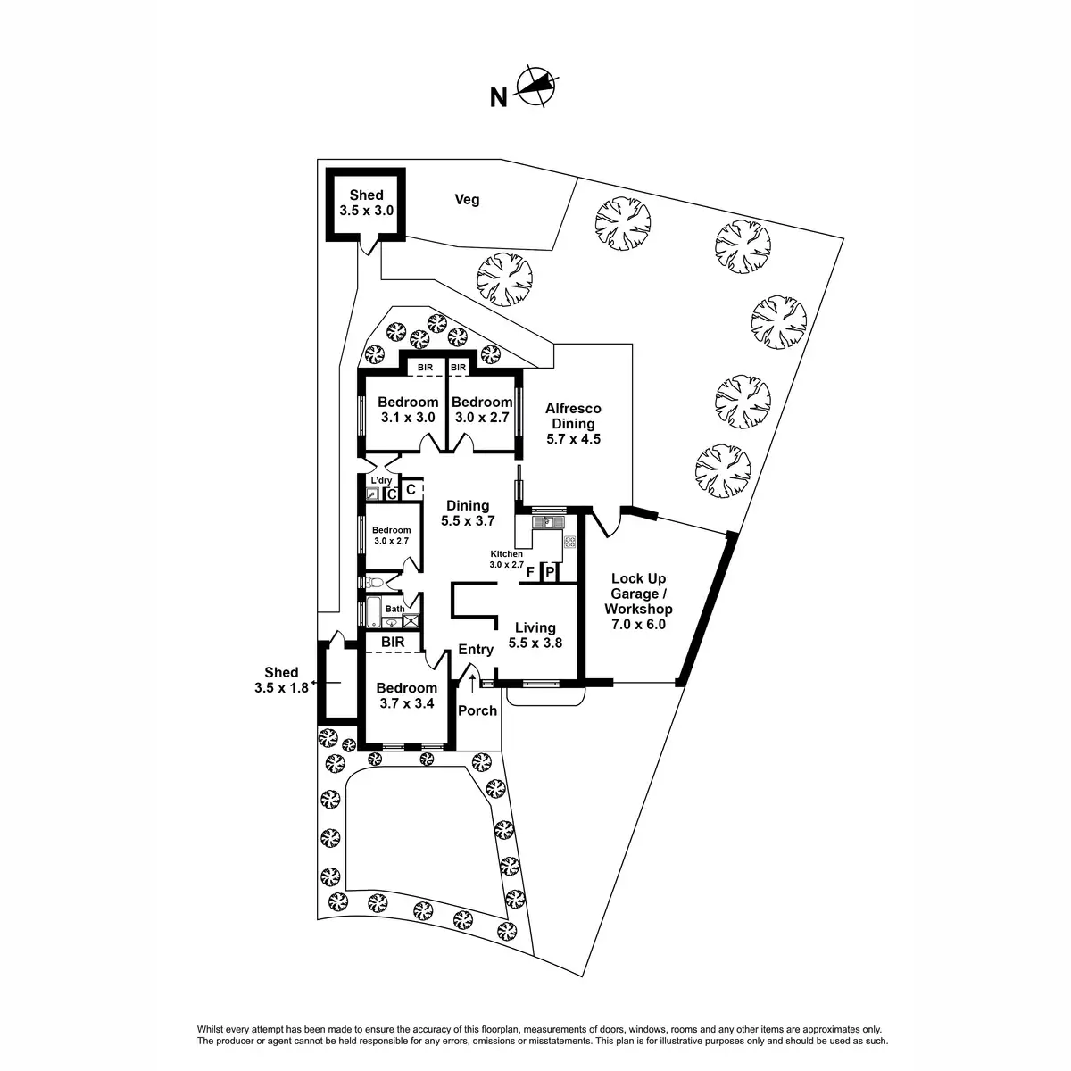 - Outdoors lies a covered timber deck superbly suited to alfresco dining that looks out onto a landscaped backyard, complete with established trees and veggies garden, as well as two garden sheds.