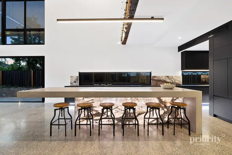 A phenomenal gourmet kitchen will leave you wanting for nothing. This immaculate culinary space includes a concrete island bench with backlit marble splash, a full suite of Vzug appliances, an integrated fridge, butlers pantry and black granite stone bench tops. Just steps away is the glass-encased wine room that features a wall of recycled railway sleepers and marble.