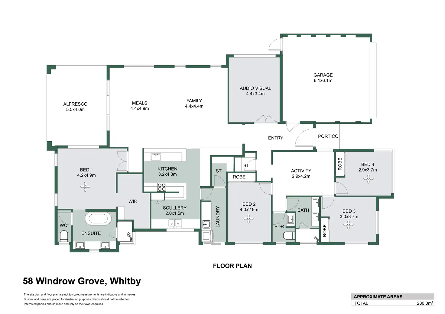 At the front of the home, you'll find 3 minor bedrooms, all featuring double-door built-in robes, along with the activity area and the main bathroom/powder room. Entertain in the dedicated audio-visual room, perfect for family movie nights, before moving into the beautiful open-plan family/meals area.