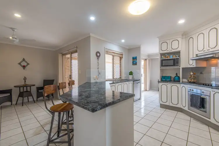 The kitchen is open plan to a 2nd sitting area plus an office nook area and overlooks the outdoor entertaining area. The home also has security screens and ceiling fans. The back yard is fully fenced and can be accessed via the drive-through double shed.