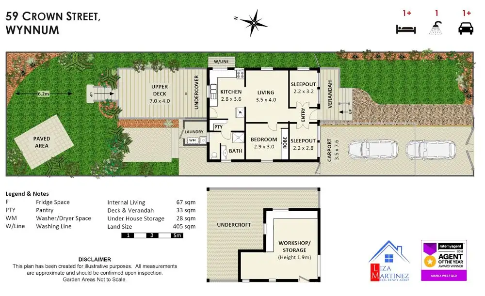 2 Bed • 1 Bath • 2 Car • 405m²