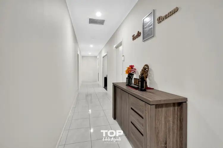 This modern four-bedroom home effortlessly combines style, comfort, and functionality, making it perfect for family living or running a home-based business. With its impressive 2740mm high ceilings, the residence exudes a grand sense of space. The master bedroom is a retreat, complete with a walk-in robe and an ensuite featuring elegant stone benchtops. The remaining bedrooms offer built-in robes, ceiling fans for comfort, and soft carpeting to create a warm, cozy atmosphere. The spacious main bathroom is designed with families in mind, offering stone benchtops, a bathtub, and a separate toilet for added convenience.