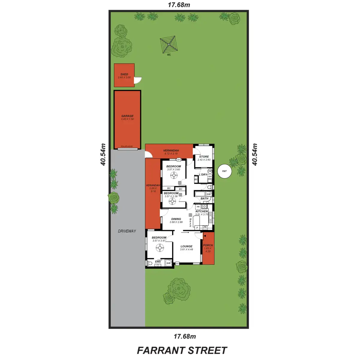 3 Bed • 2 Bath • 2 Car • 710m²