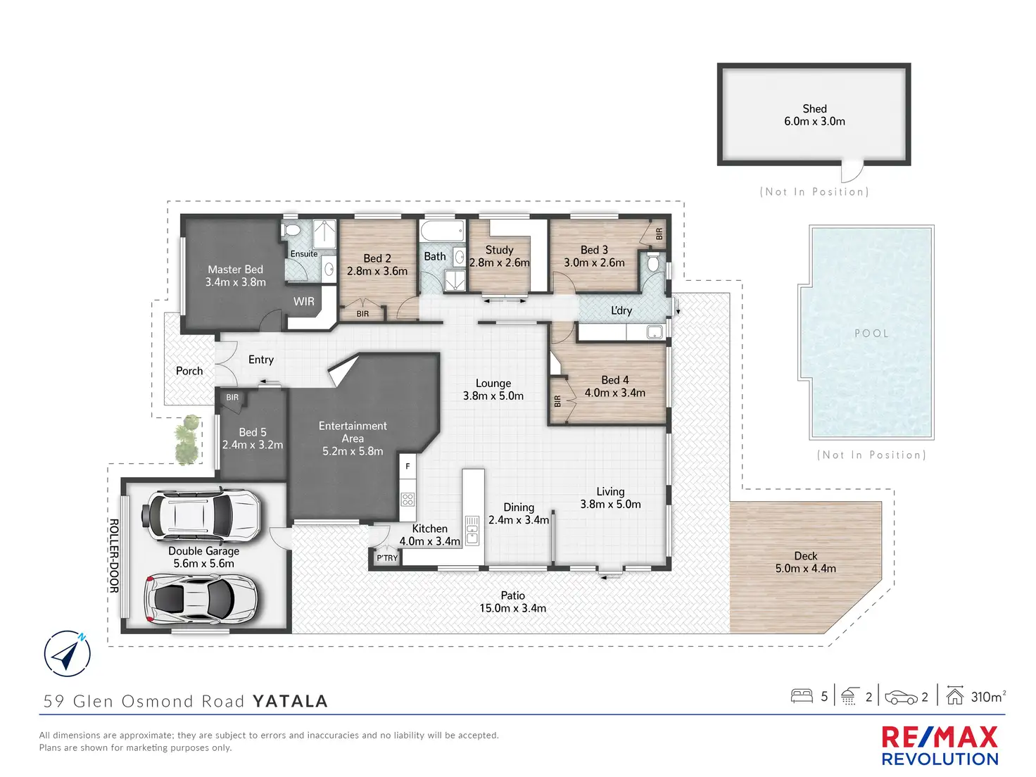 Nestled on an expansive 8014sqm estate, this executive-style property exudes sophistication and space, designed for families who value comfort and functionality. The home welcomes you with a grand circular driveway, leading to a double lock-up garage and a double shade sail offering ample off-street parking, including a dedicated bay for a trailer or caravan. Inside, the master bedroom boasts a ceiling fan, air conditioning, fitted walk-in robe with shelving, and a spacious ensuite with abundant storage. A large carpeted lounge with air conditioning provides serene garden views, while a dedicated study / home office with desks caters to remote work or quiet reflection. Down the hall, the heart of the home unfolds into a massive hub featuring formal and casual dining areas, a family room with fans and air conditioning, and a sprawling kitchen equipped with stainless steel electric appliances and a dishwasher, perfect for entertaining or everyday living.
