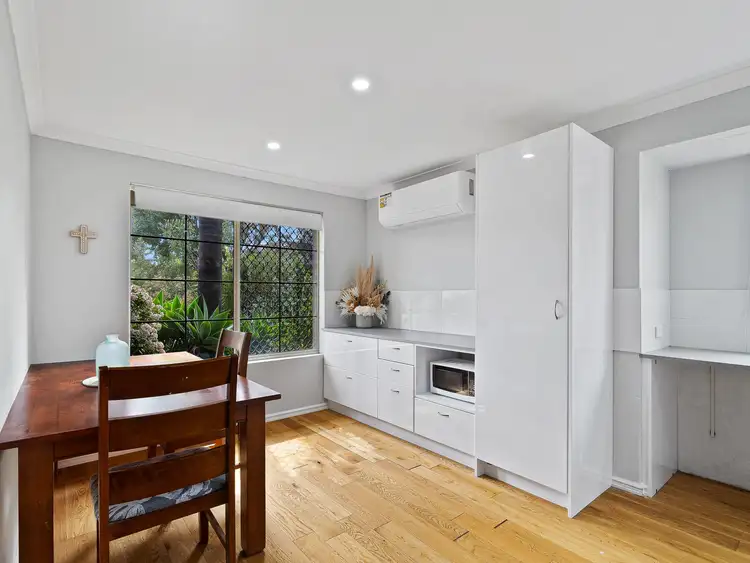 The bathroom has a shower over bath combination, a single vanity, storage mirror, and full floor-to-ceiling tiling. The laundry area includes a built-in bench, stainless steel dome trough, slimline linen press, and a separate toilet. Additional features of the home includes a split system reverse cycle air conditioner, security screens and grills, wood-look vinyl flooring throughout (no carpets, ideal for allergy sufferers), skirting boards, instant gas hot water system, NBN connection, and neutral décor throughout.