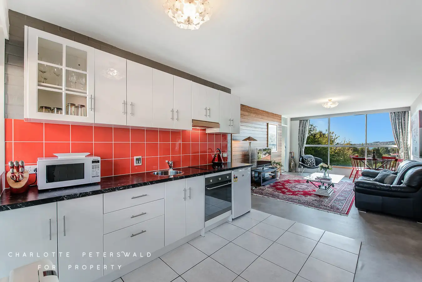 The combined dining, living and kitchen areas are filled with natural light via the large windows framed by gorgeous greenery, with water, marina, city night lights and Wrest Point views from the living room. While taking in the vista, it is just a few steps to the adjoining tiled back balcony where you can enjoy your morning coffee in the sun.