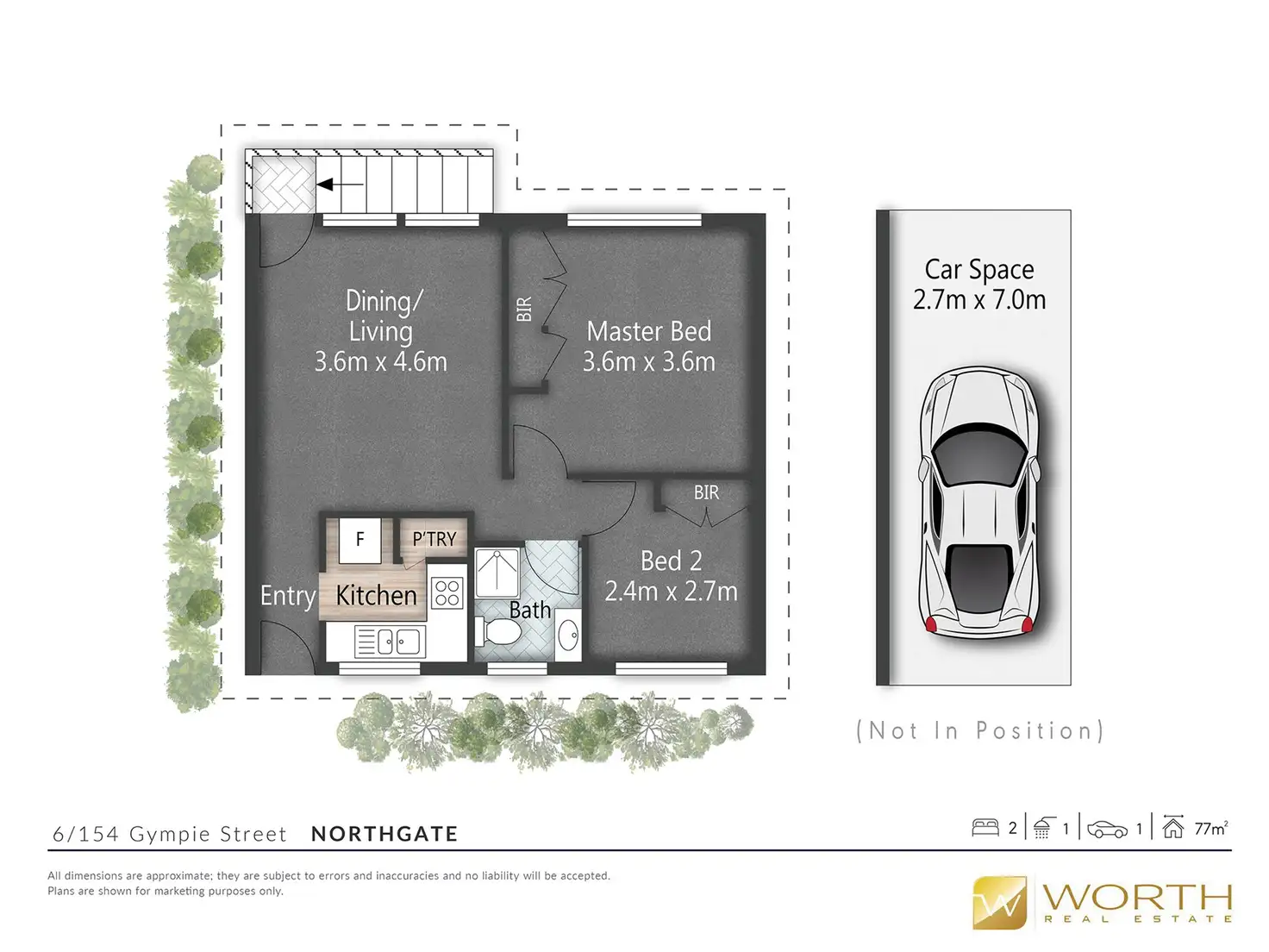 2 Bed • 1 Bath • 1 Car • 77m²