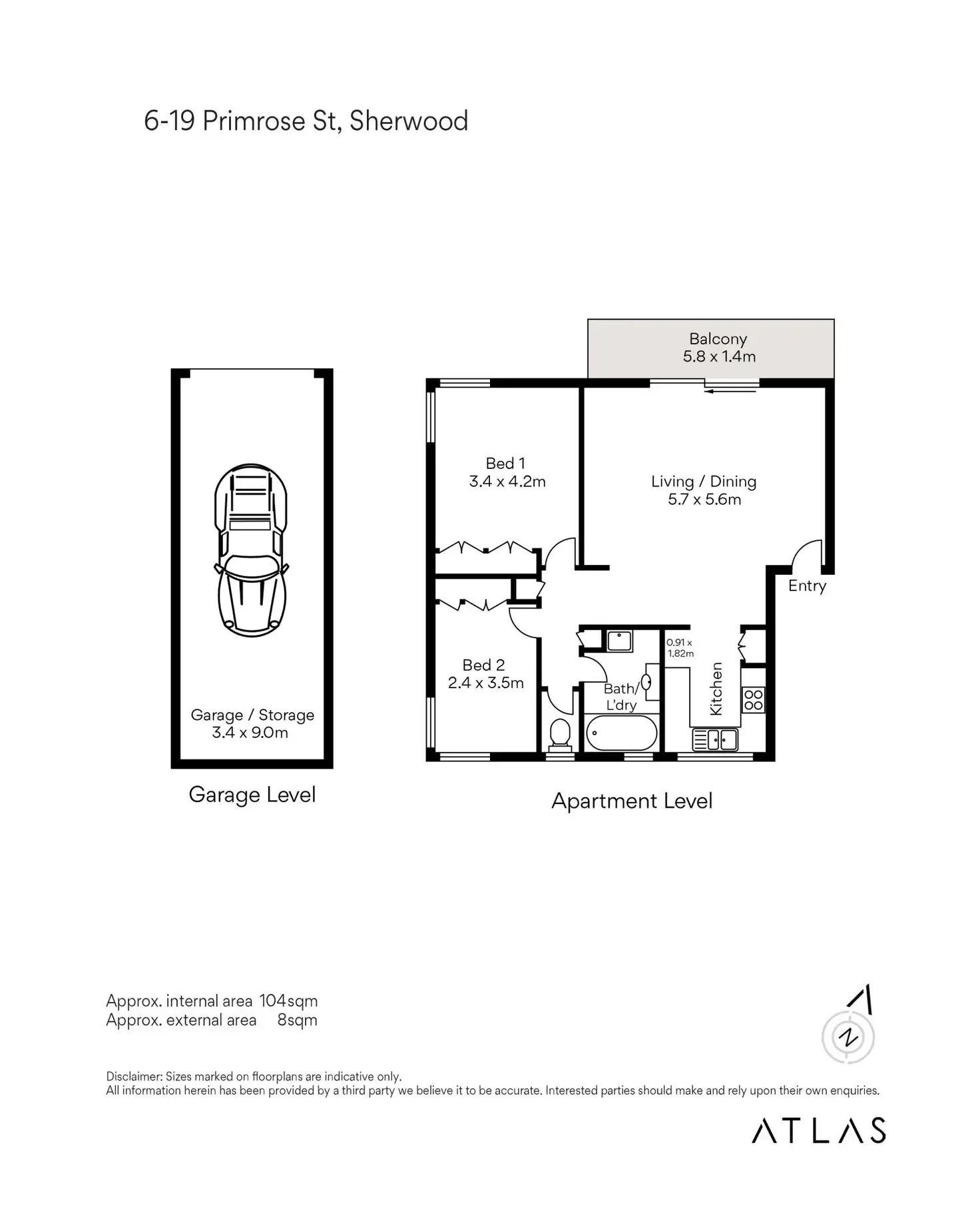 2 Bed • 1 Bath • 1 Car • 121m²