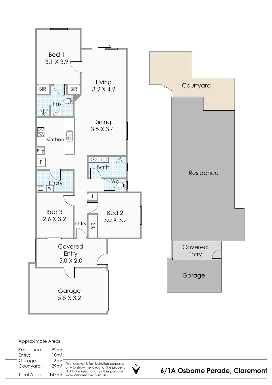 Meet your guests via a gated courtyard, which provides you dual access from your deep, private garage.