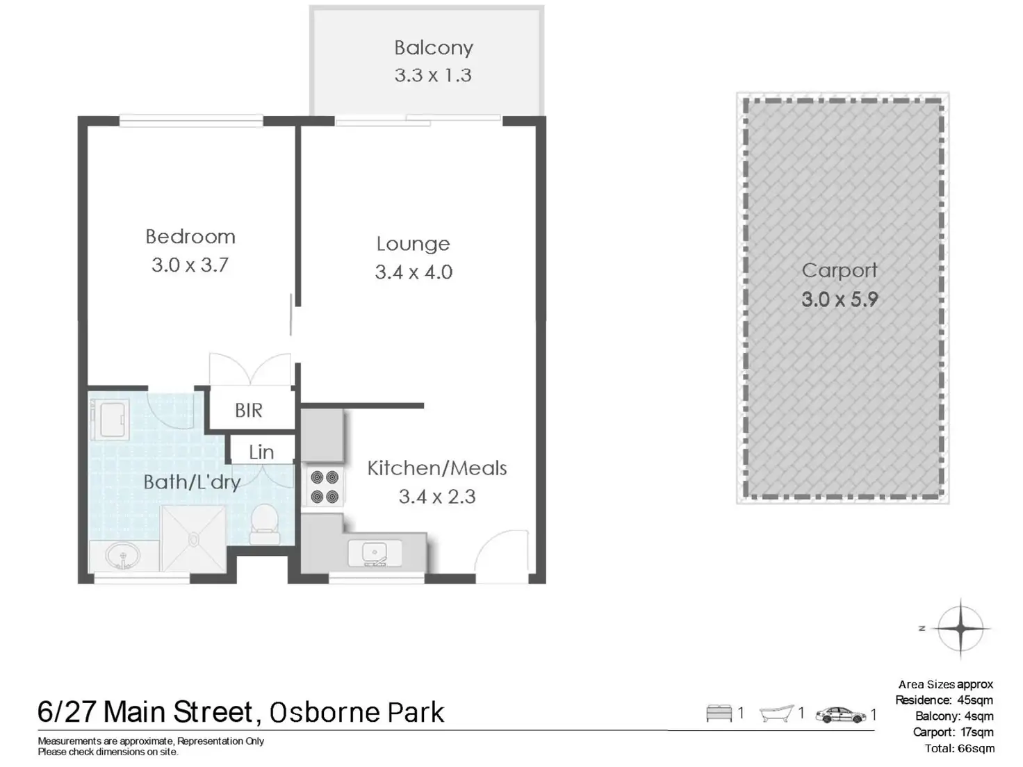 1 Bed • 1 Bath • 1 Car