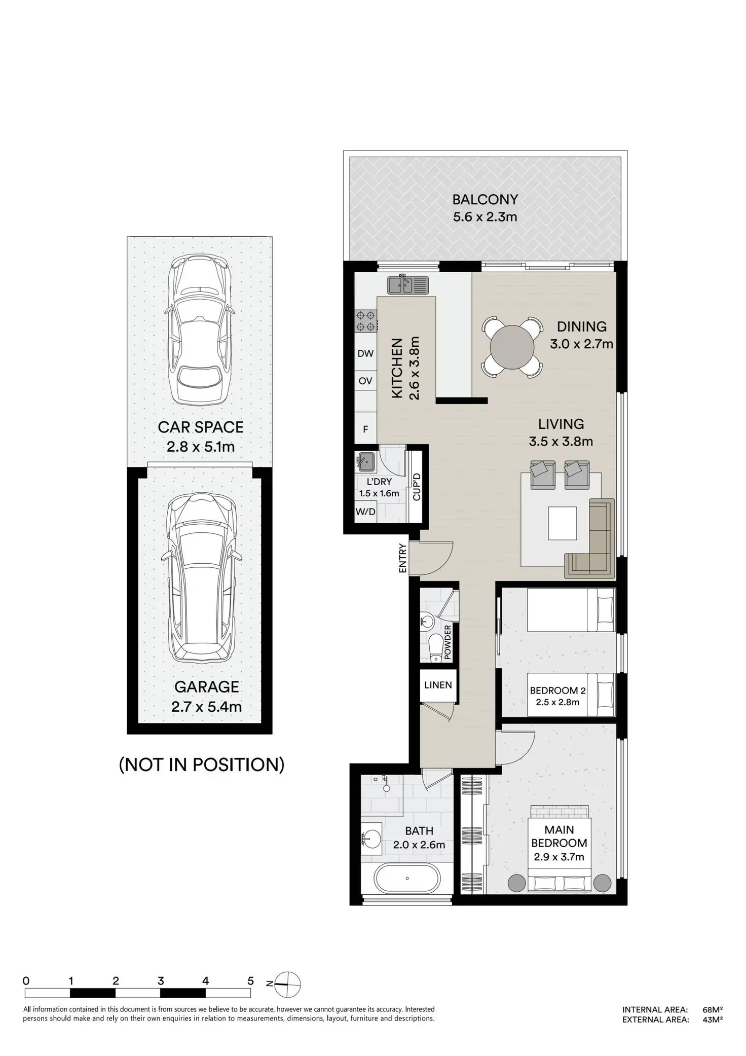2 Bed • 1 Bath • 2 Car • 100m²