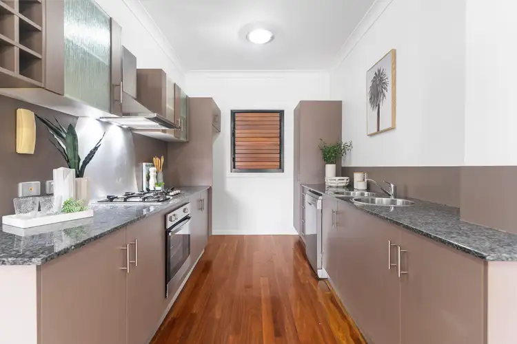 - Modern kitchen featuring granite bench tops, stainless steel appliances, dishwasher, and gas cooking.