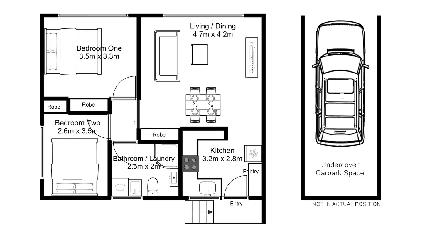 2 Bed • 1 Bath • 1 Car