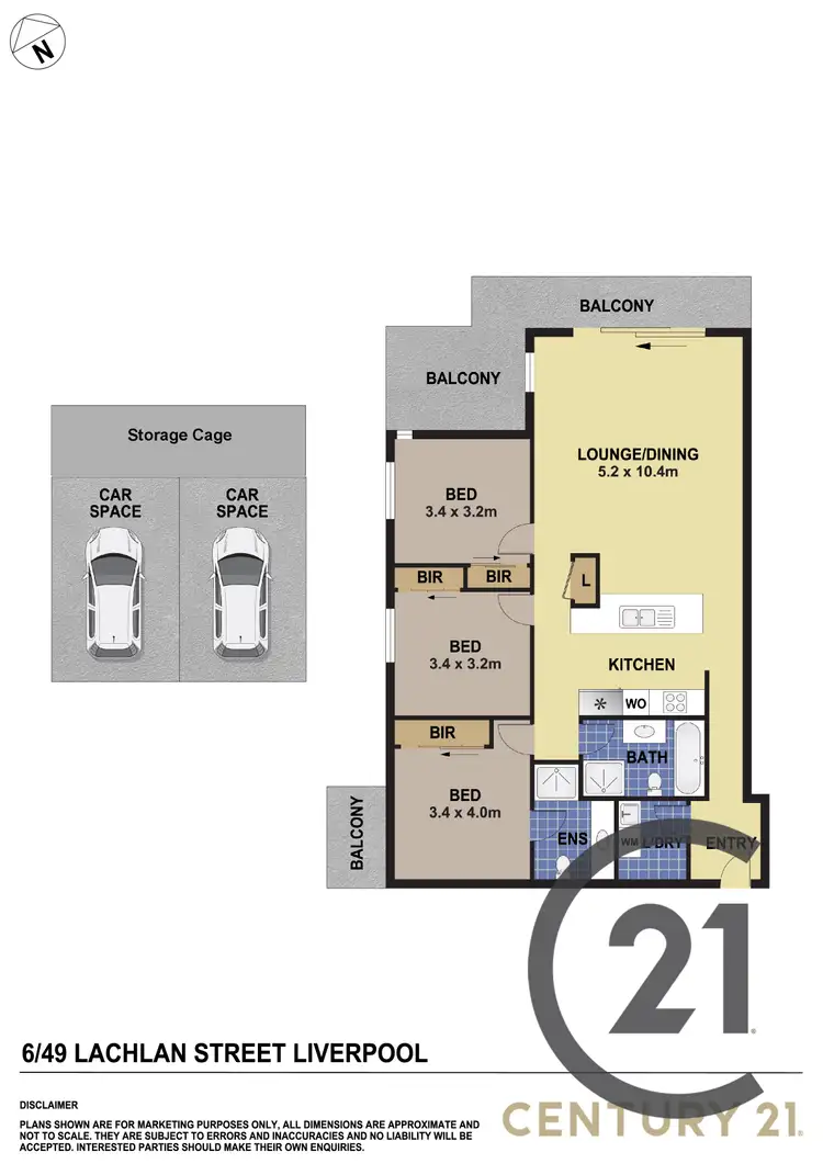 “3 BEDROOMS, 2 BATHROOMS, 2 BALCONIS & 2 CARS”