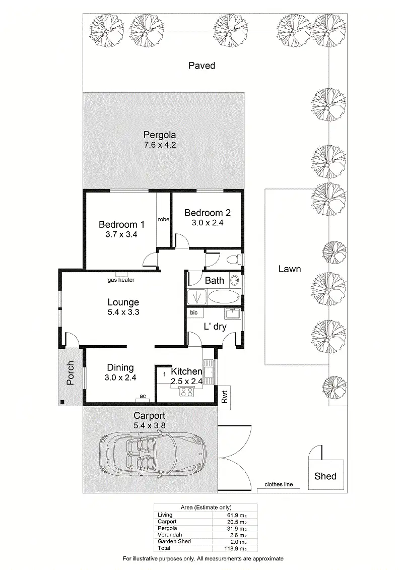 2 Bed • 1 Bath • 1 Car • 260m²