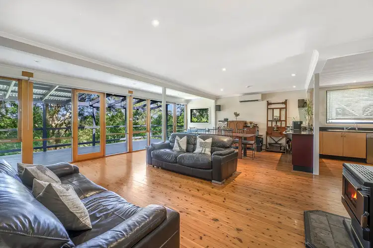 A large bright and airy living zone sits at the heart of the home, opening to a wide entertainer's deck where birdlife and the sounds of nature set a peaceful atmosphere. A versatile study adjoins this space, while the layout extends across two levels to provide flexible living arrangements for families or guests, including a second lounge and well separated bedrooms.