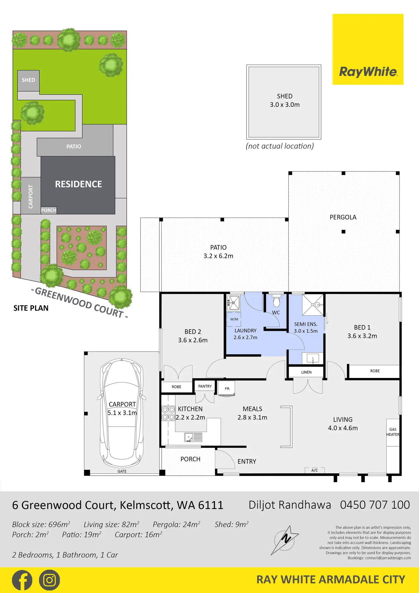 2 Bed • 1 Bath • 1 Car • 696m²