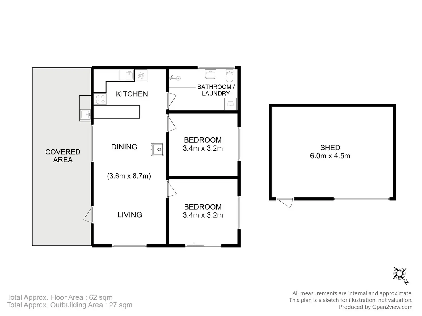 2 Bed • 1 Bath • 3 Car • 11020m²