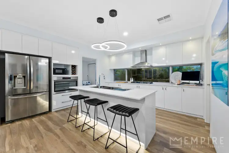 This impressive custom-built home showcases exceptional finishes and thoughtful design throughout, featuring multiple living areas, a gourmet kitchen and a superb outdoor entertaining space complete with a bespoke bar, BBQ and pizza oven overlooking a temperature-controlled pool.