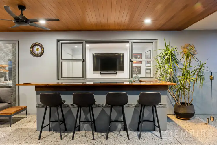 • Custom built Jarrah bar with resin fill and feature lighting