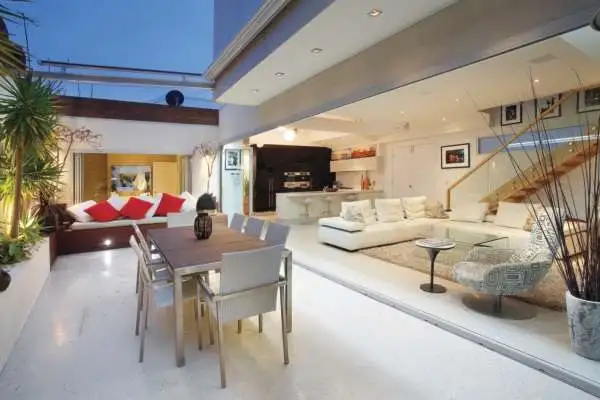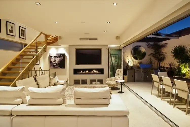 Outside, a water feature, plumbed BBQ, sunbed, retractable awnings, retractable bi-fold doors and tropical gardens establish elegant environs for entertaining all year round.