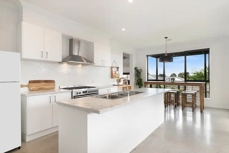 accentuated by high ceilings and bathed in natural light. The modern kitchen is a chef's dream, boasting a walk-in pantry, island bench and quality stainless steel appliances. Whether you're hosting family gatherings or intimate dinner parties, the undercover alfresco area is the perfect setting for entertaining, providing a seamless transition from indoor to outdoor living. Here, you can enjoy a slightly elevated position, capturing breathtaking sunsets and panoramic views.
