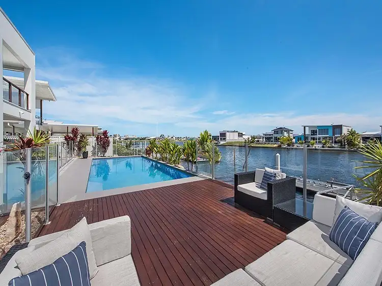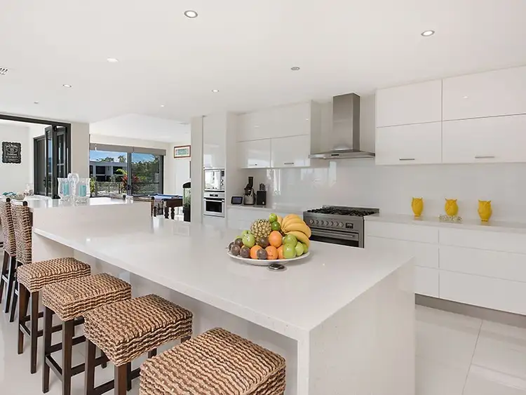 The downstairs living & dining spaces flow effortlessly onto the covered entertaining area with purpose built outdoor bbq & wet bar with the water providing a pleasant backdrop from all vantage points. With a 110inch screen, feature lighting & purpose built cabinetry the theatre room re-creates the cinema experience at home. With a separate guest room & study area your guests will be well catered for without feeling like an inconvenience.