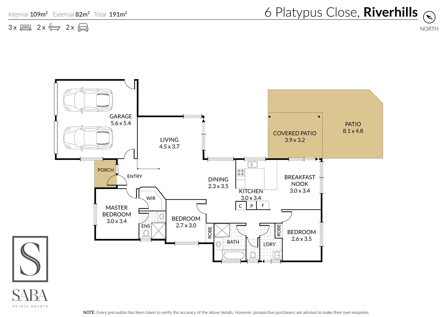 Spacious 3-bedroom, 2-bathroom layout with built-in robes and ensuite to master