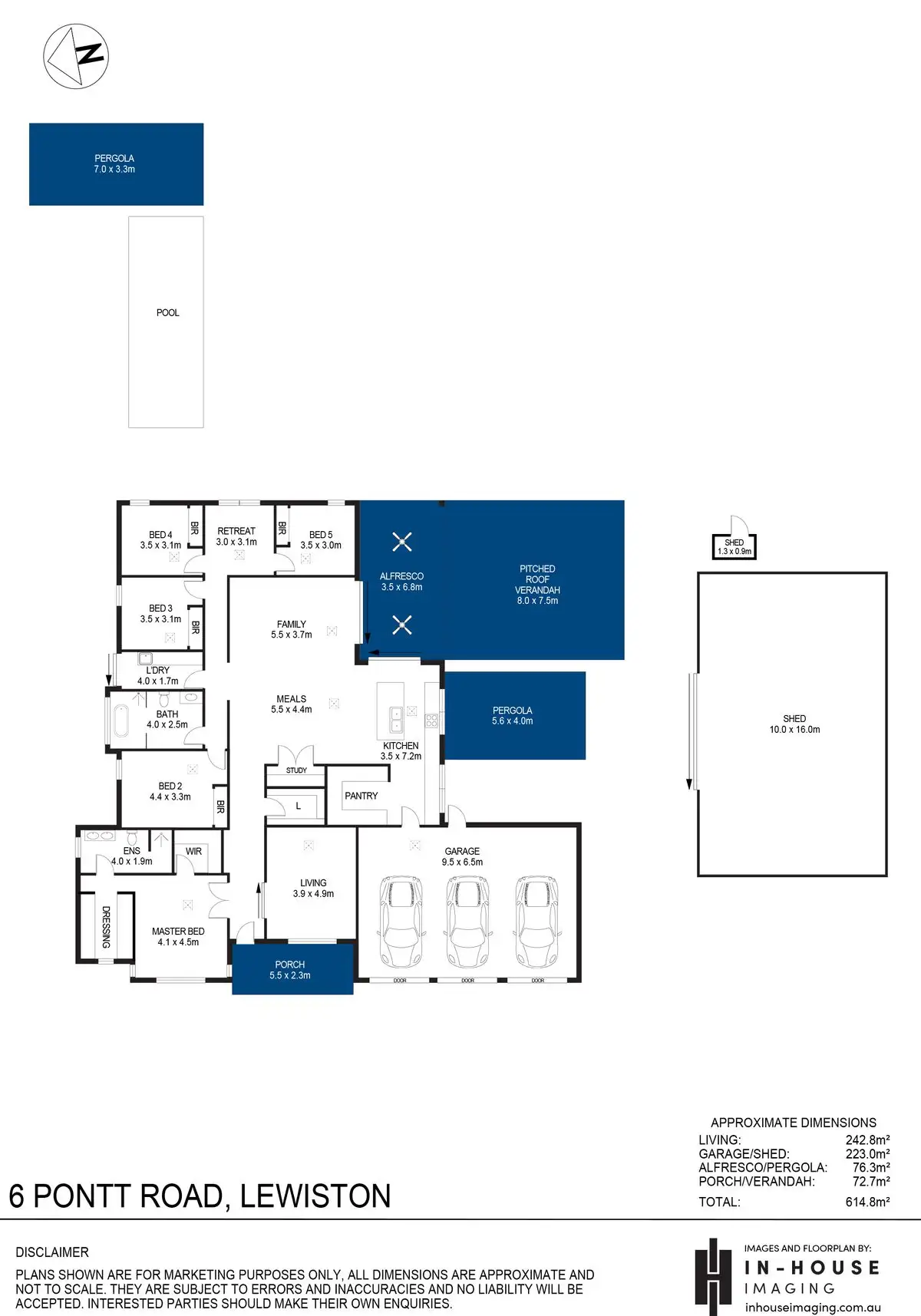 Practical considerations such as a large septic system rated for dual occupancy, plumbing provisions in the shed for a toilet, shower, kitchenette provisions in the gabled entertaining area, and a 13.2 kW solar system have all been fitted.