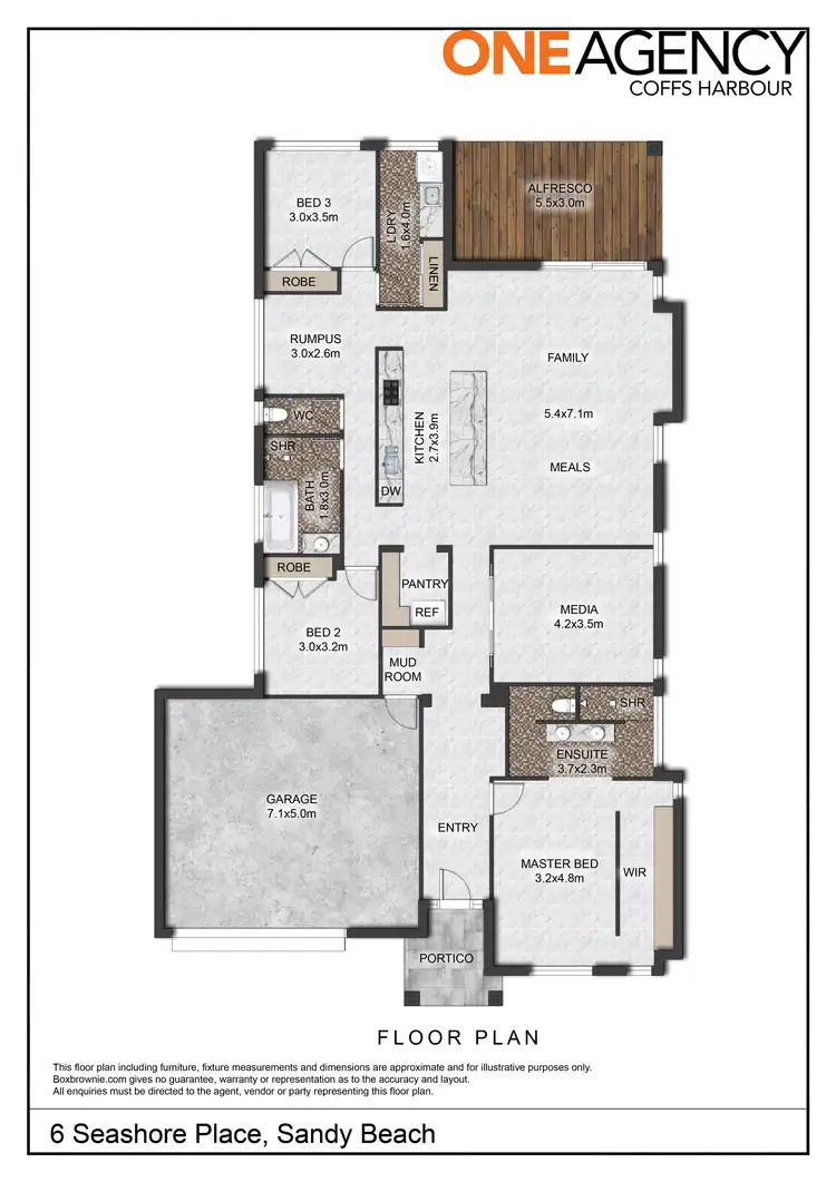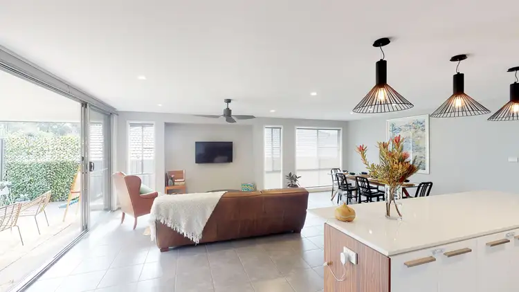 Showcasing a level design with a welcoming and spacious entry, ceramic format tiles and a neutral colour scheme which would suit any choice of décor; this home features an open plan encompassing two living areas with north-facing windows allowing winter sun and summer breezes. The modern and spacious family and dining areas are adjacent to the sophisticated kitchen with pendant lighting and island bench, perfect for large meal preparation or entertaining and offers a gas cooktop, under bench oven, rangehood, dishwasher and walk-in pantry with fridge alcove and connection to water. The purpose-built soundproof media room with reverse cycle air-conditioning and cavity sliders is ideal for movie nights or a quiet place to relax. There is a home/study/multi-purpose space positioned between bedrooms two and three. There are three carpeted bedrooms, two include built-in wardrobes, the generous main suite, positioned in isolation is on-trend and features an open ensuite with twin vanities and walk-through robe. The family bathroom offers a separate toilet and there is a separate laundry. The glass sliders to the back yard are extended to the ceiling allowing for seamless indoor/outdoor living, the entertaining area features a built-in BBQ and adjoins the split-level backyard, designed for easy maintenance, high visual impact and privacy. The oversized double lock-up garage was specifically designed to fit a 4WD and camper trailer and provides drive through access to the 5x4m lock-up colour bond shed; an added bonus for the home hobbyist! Additional features include: roof and wall insulation, ceiling fans, downlights, simultaneous gas hot water, NBN connected, 3,000L water tank and additional storage behind and to the side of the shed.