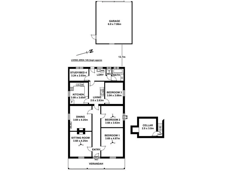 3 Bed • 1 Bath • 2 Car • 557m²