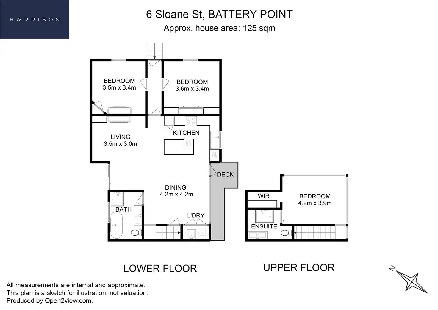 The bright, welcoming front door opens to the hallway with good-sized rooms on either side, currently used as bedrooms but equally as suitable as a study or home office. The living space beyond enters a 'new world'. The kitchen, on the left, is state of the art with quality appliances and dramatic black tiles contrasting with the softer greys of the cabinetry. The whole area with its well-defined living and dining areas is spacious with light pouring in through the extended windows of the semi-mezzanine above, as well as through glass doors and windows opening onto green spaces with an attractive deck and courtyard facing the river. A stylish, well-designed main bathroom completes the lower level, whilst stairs lead to the master bedroom, ensuite and walk-in wardrobe above with its stunning 180° views of Battery Point, the Derwent River and beyond.