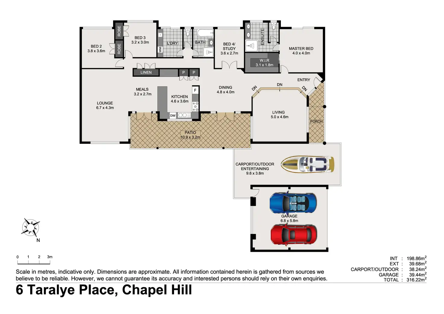 • Master suite with large glass sliding doors to private terrace, new carpet, walk in robe, ceiling fan and stylish ensuite bathroom plus separate toilet;