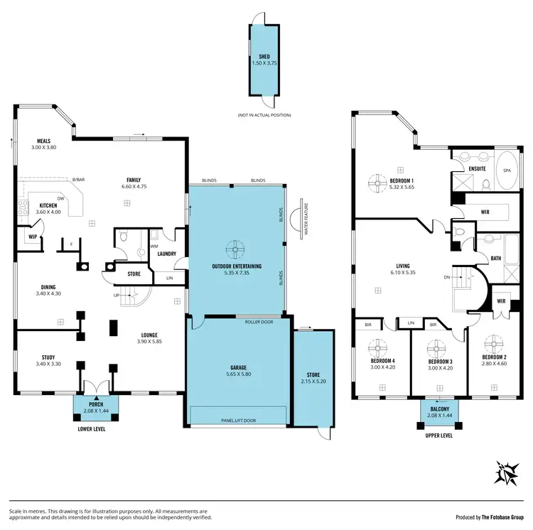 From the main downstairs living area, double sliding doors lead to an outdoor entertainer's haven! Enjoy gatherings under the expansive undercover entertaining area surrounded by café blinds, featuring lighting, a ceiling fan, and tranquil water feature. The low-maintenance tiered yard, dotted with established trees, offers endless play opportunities for children, complemented by a garden shed and small lean-to.