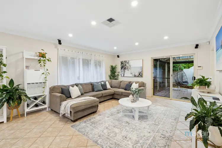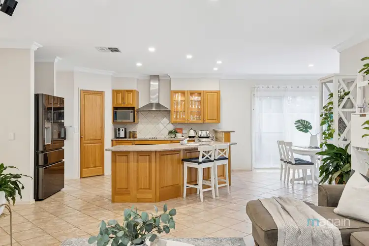 The heart of the home unfolds with a stylish timber kitchen overlooking open-plan living areas, seamlessly extending outdoors through large sliding doors to a generous entertaining area. The timeless kitchen features a walk-in pantry, an abundance of cabinetry, modern stainless-steel appliances including a dishwasher plus a new oven, and a well-designed breakfast bar perfect for entertaining guests or casual dining.