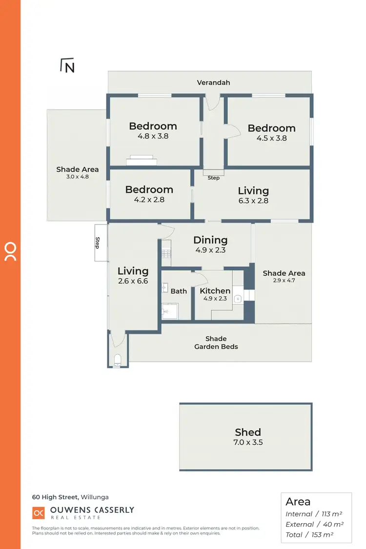 All information or material provided has been obtained from third party sources and, as such, we cannot guarantee that the information or material is accurate. Ouwens Casserly Real Estate Pty Ltd accepts no liability for any errors or omissions (including, but not limited to, a property's floor plans and land size, building condition or age). Interested potential purchasers should make their own enquiries and obtain their own professional advice.