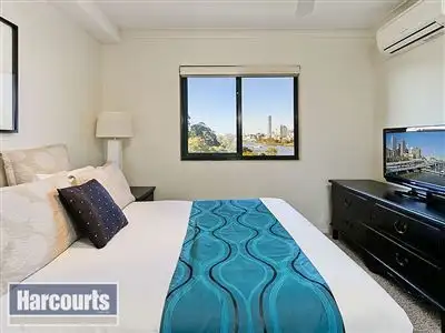 Master bedroom with air-conditioning, ensuite, two built-in robes, ceiling fan and superb views to the city and over the river