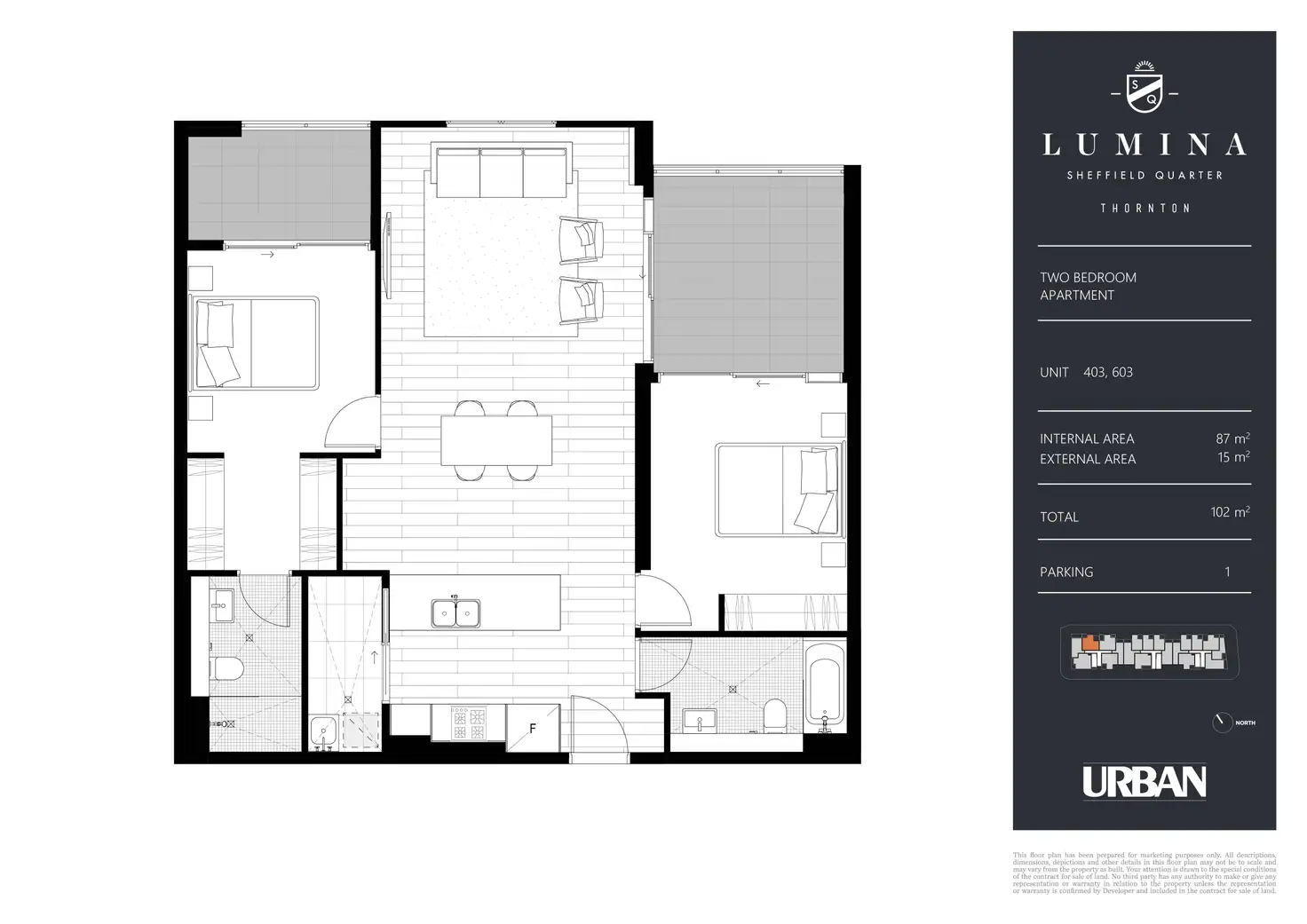 2 Bed • 2 Bath • 1 Car • 102m²