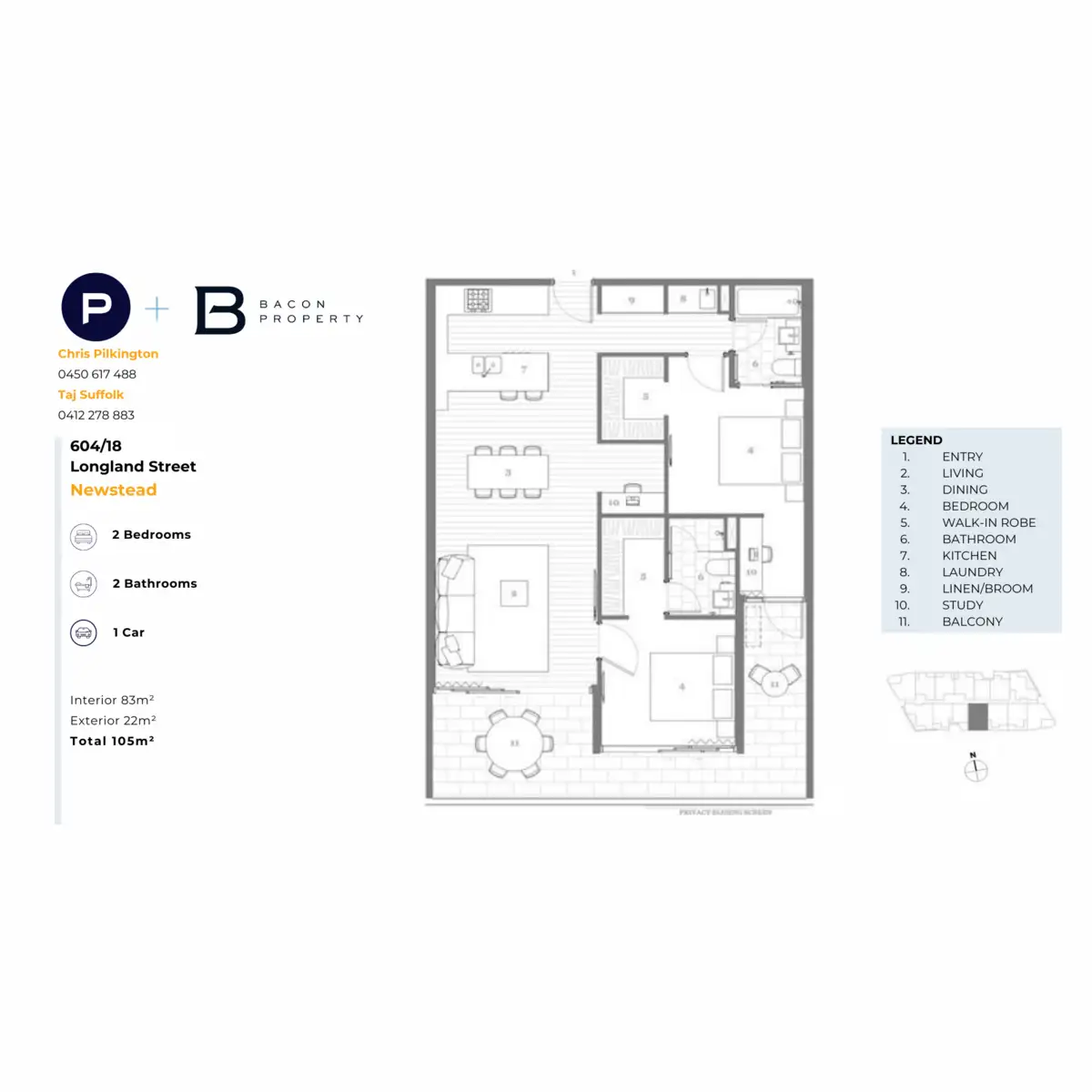 Perched on the sixth level, this luminous 2-bedroom apartment welcomes the morning sun and offers breathtaking views towards Teneriffe Hill. Designed to seamlessly blend indoor and outdoor living, its expansive layout features 2.7m high ceilings, a generous 22sqm balcony, and full-height stackable glass sliding doors that blur the lines between inside and out. The open-plan living area flows effortlessly into an entertainer's kitchen equipped with premium Miele fixtures, including an integrated dishwasher, gas cooktop, and multi-function oven.