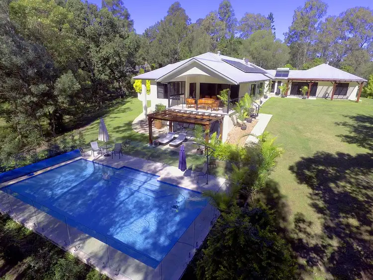 This luxurious and elegant home is located on an elevated site with north-easterly aspect in an exclusive enclave in Pullenvale. The palatial entryway, featuring ten foot coffered ceilings, flows out to a central courtyard with water feature. Natural light filters through the wall-size expanse of glass, framing the picturesque views and connecting the indoors to the outdoors.