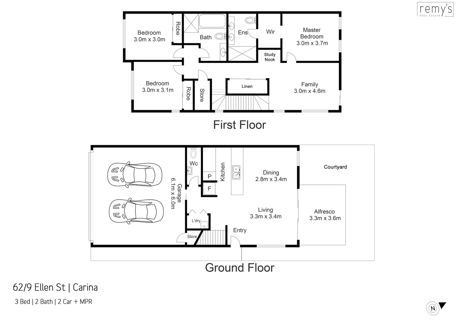 - 3 bedrooms, 2.5 bathrooms, laundry, remote 2-car garage