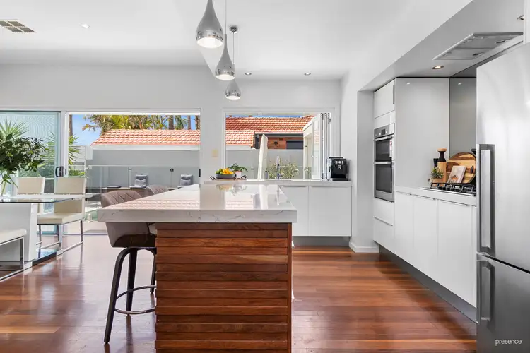 Harmoniously blending luxury, comfort and outdoor living, this elegant home is tailored for those who appreciate the finer things in life. Inside, two generous living areas exude warmth and connection. Gleaming Blackbutt flooring flows effortlessly through the sunlit open-plan layout to a glossy custom kitchen boasting dual Bosch ovens and an eye-catching island with waterfall edge. Clutter-free living is on offer too, with ample cupboards for all your gourmet needs.