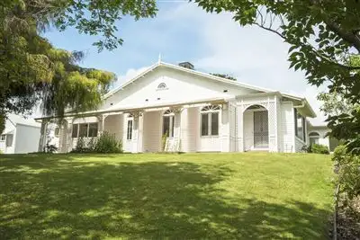 Land area: Land Area Ha: 1.042 Property condition: Excellent Property Type: House Garaging / carparking: x3 lockup car garage, , Double lock-up, Off street Construction: Weatherboard Joinery: Timber, Aluminium Roof: Iron Flooring: Timber and Polished Window coverings: Blinds Chattels remaining: Siemens dishwasher, Westinghouse hot plates, Smegs wall oven, Jindara wood-heater, Daiken heat-pump x3, Sunlighten sauna, Tastic.: Fixed floor coverings, Light fittings Kitchen: Open plan, Separate cooktop, Separate oven, Upright stove, Double sink, Pantry and Finished in (OtherStone) Living area: Formal dining, Separate dining, Separate living Main bedroom: King, Built-in-robe and Walk-in-robe Bedroom 2: Double Bedroom 3: Double Bedroom 4: Double Extra bedrooms: Huge sunroom Additional rooms: Conservatory / sunroom Main bathroom: Bath, Separate shower Laundry: Separate Workshop: Separate Views: Rural Aspect: North, South, West, East Outdoor living: Spa, Garden, BBQ area Fencing: Fully fenced Land contour: Flat to sloping Garden: Garden shed (Number of sheds: 3) Sewerage: SepticBuilding details