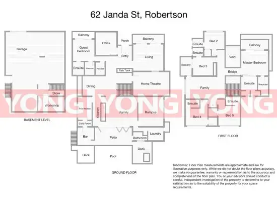 - 6 bedrooms in total (downstairs: a guest bedroom with private balcony, ensuite and walk in robe, upstairs: gorgeous living area and 5 bedrooms with their own designer ensuite. The master bedroom has private balcony, another bedroom has two-way balcony connecting living area.