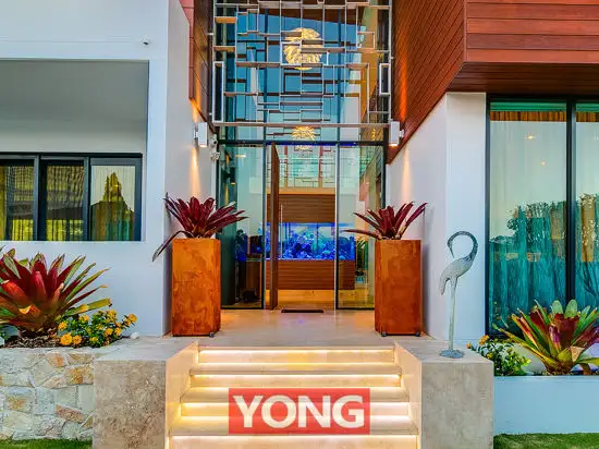 - Feature timber ceilings, tropical fish tank, glass mosaic feature wall