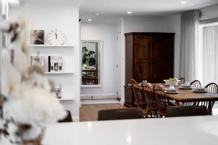 The scattering of outdoor entertaining spaces are each defined intimately, yet linked together for expansive entertaining options. Sitting by the slow combustion fireplace with a glass of wine in winter, or alternatively enjoying the sunlit outdoor deck during the warmer months, this home has the perfect layout for all seasons and occasions. All year round comfort is amplified by the reverse cycle heating and cooling,both upstairs and downstairs.