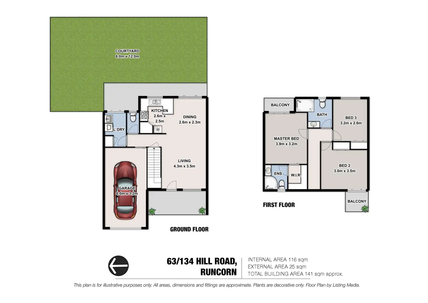 Two bathrooms service the home, one with a large modern shower, and the other including a shower over bath combination, whilst a guest toilet for convenience is located downstairs. This great family home offers three bedrooms - each great in size and with plush carpeting, with two of these bedrooms offering a private balcony to take in the breeze. The master bedroom also features a walk in robe, and ensuite. Each room features a ceiling fan, with the downstairs utilising both ceiling fans, and air conditioning.